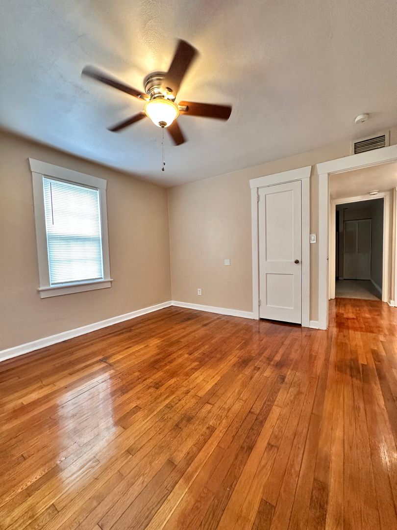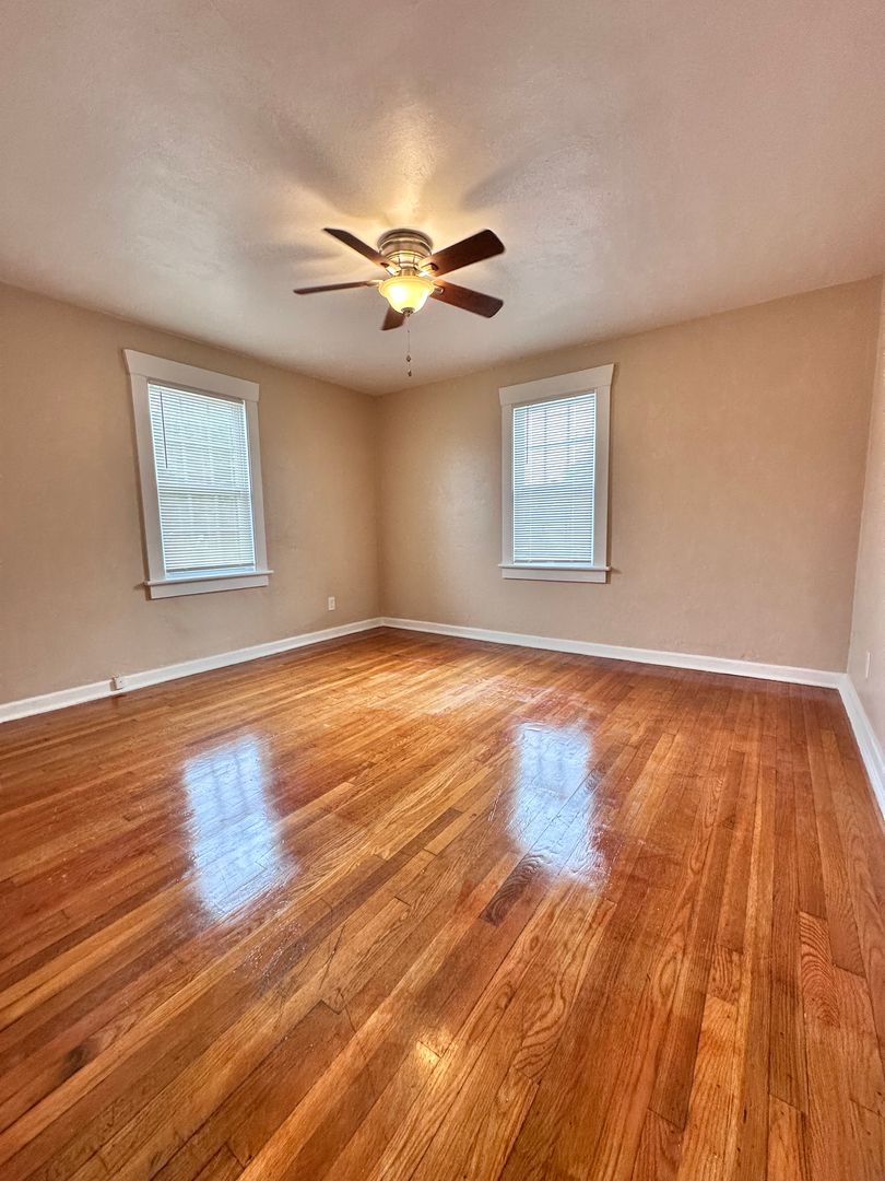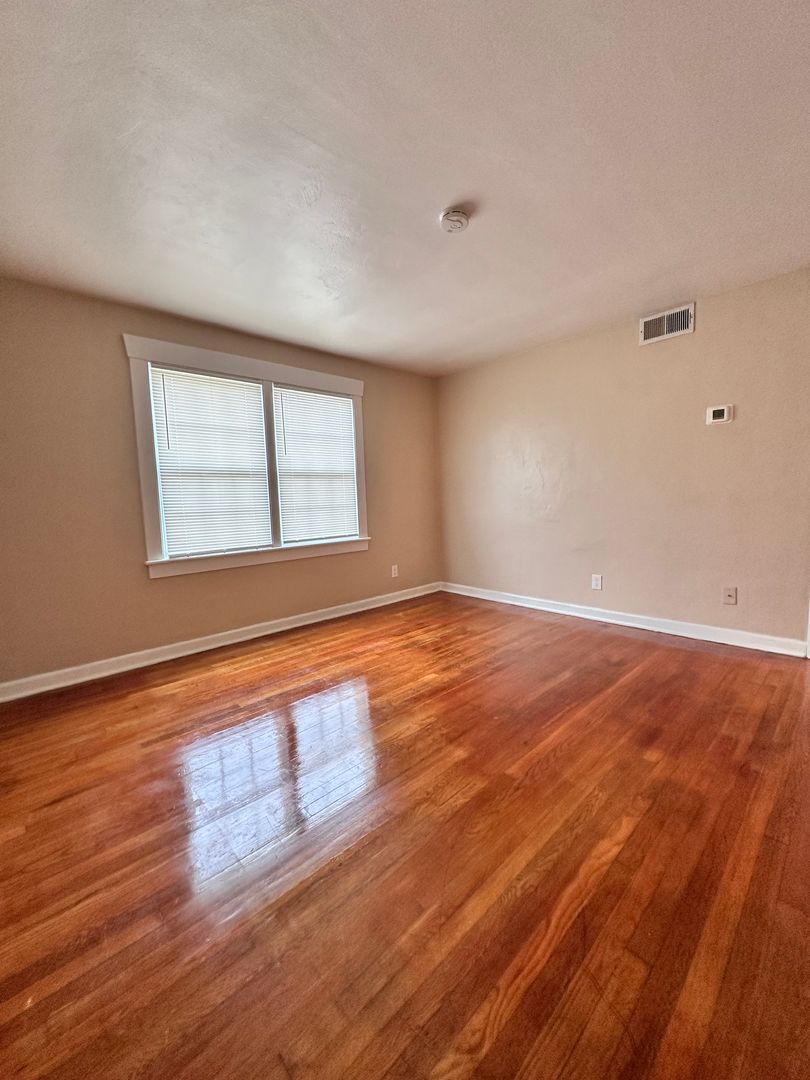 2 bedroom, 1 bath apartment, stove, micro hood, fridge, area for stackable washer/dryer, central heat & air, ceiling fan in each bedroom, hardwood floors, tenants pay water/sewage, electric, entrance door to building has a door lock with code, aprox 850 sq ft, yr built 1965, one year lease, not furnished